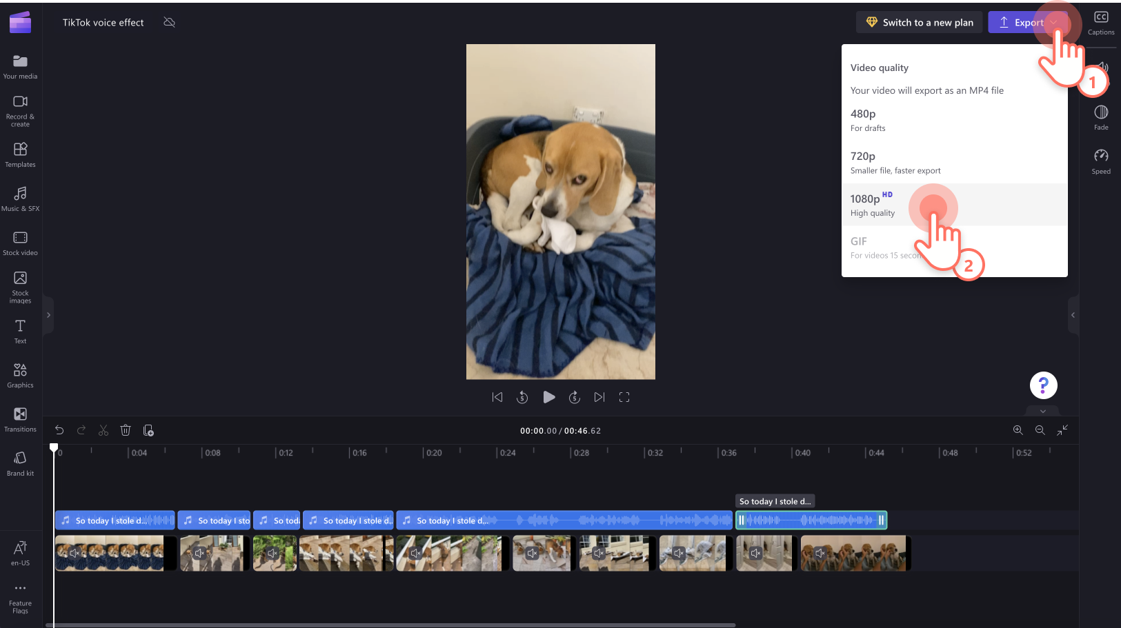 След като сте доволни от вашето видео на Tiktok Voiceover, щракнете върху . . Препоръчваме да изберете 1080p HD за най -качественото видео за Tiktok.