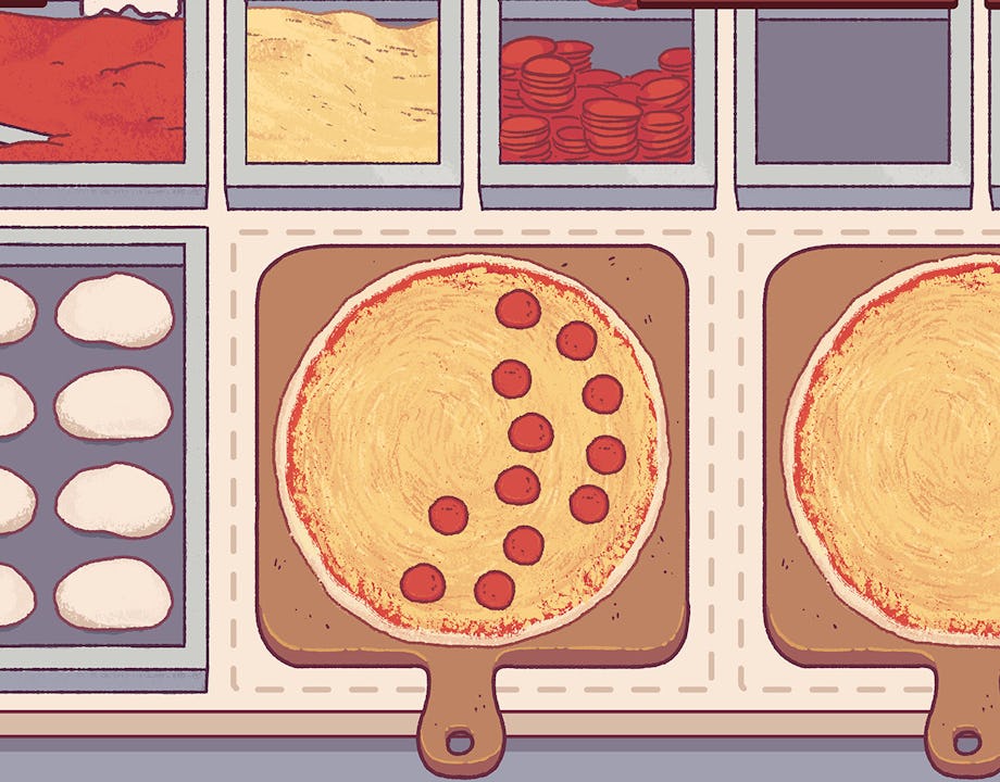 Добра пица, страхотна пица, . Въпреки че е състезание срещу часовника, внимателно поставянето на съставки за перфектния пай е странно медитативно.